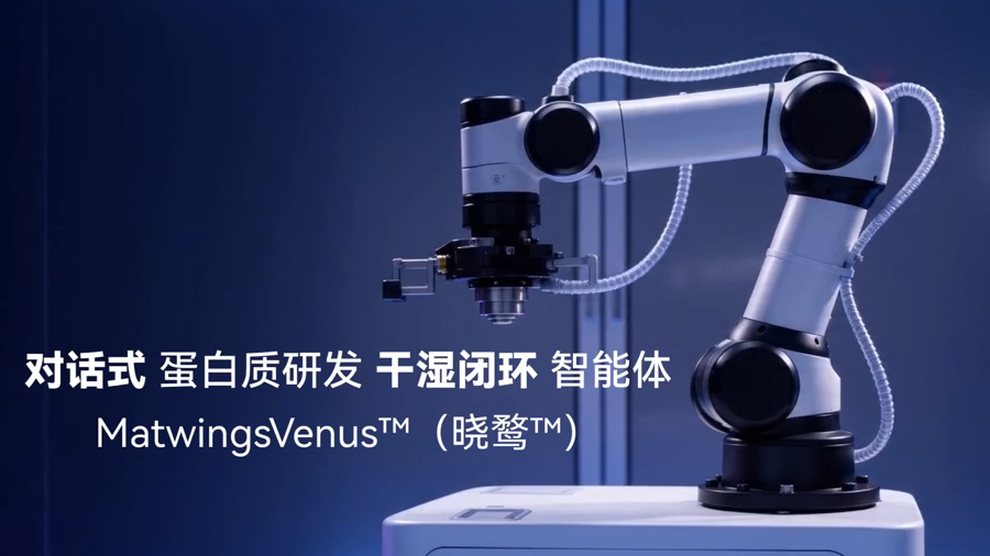 蛋白质是最重要的生命元件之一,用人工智能技术改造和设计蛋白质,对医药、食品、材料等领域研发具有重要价值。今天,上海未来产业基金投资的天鹜科技发布了对话式蛋白质研发智能体“晓鹜”(MatwingsVenus),用户可通过与智能体对话,完成行业研究、标签数据库检索、蛋白质设计、自动化实验验证、专家在线协同等一系列工作,体验“设计即验证、验证即迭代”的智能化研发模式。