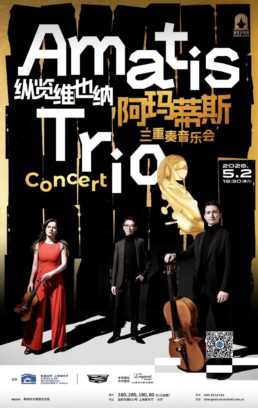 5月2日,荣获“BBC新生代艺术家”与“ECHO新星大奖”的阿玛蒂斯三重奏将亮相上海音乐厅,带领观众感受德奥古典音乐的纯粹魅力,开启一场“纵览维也纳”的音乐之旅。该乐团由德国小提琴家莉娅·豪斯曼、英国大提琴家塞缪·谢泼德与荷兰钢琴家韩梦捷组成,他们有着从街头卖艺到跻身世界舞台的传奇经历,其演奏被英国权威杂志《The Strad》评价为“真正令人屏息的演奏——毫无保留、全情投入,风暴与激情一览无遗”。本场音乐会曲目编排紧扣德奥古典脉络,精选海顿《C大调钢琴三重奏》、贝多芬《降E大调第一钢琴三重奏》、舒伯特《降B大调第一钢琴三重奏》等经典作品,通过三位音乐家的默契配合,展现维也纳乐派从古典主义到浪漫主义的风格演变。